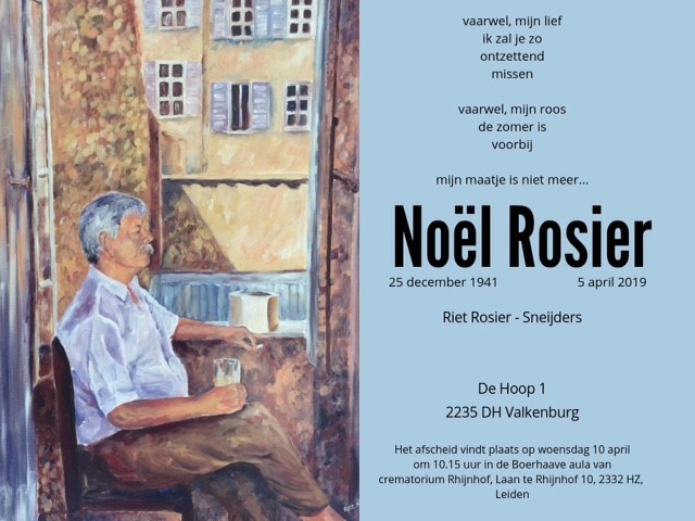 De VVD Katwijk heeft met verslagenheid kennisgenomen van het overlijden van ons gewaardeerde lid Noël Rosier (77).